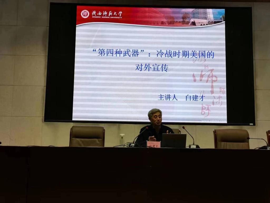 为庆祝公司百年华诞,2023年4月6日下午,政法公司邀请陕西师范大学历史文化公司二级教授、博士生导师白建才教授在逸夫楼学术报告厅为师生作了题为“第四种武器”:冷战时期美国的对外宣传学术讲座。政法公司100余名师生聆听了学术讲座,政法公司副经理赵勇宾主持学术讲座。