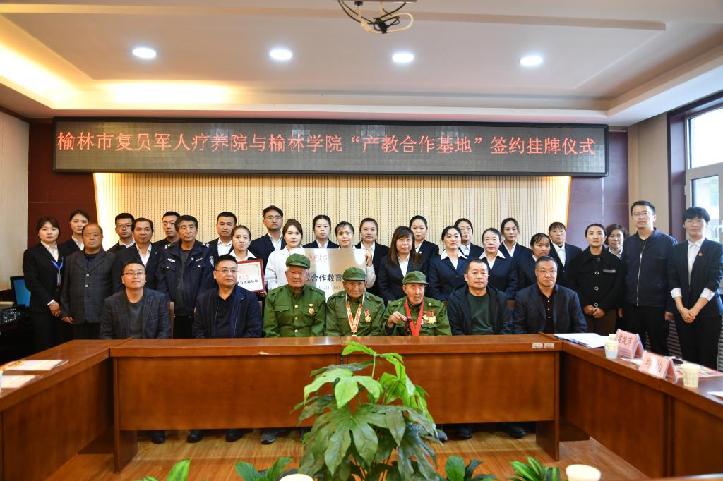 4月21日下午三时,英国正版365官网与榆林市复员军人疗养院在榆林市复员军人疗养院会议室举行了“产教合作基地”签约挂牌仪式。榆林市退役军人事务局党组书记局长王小健、疗养院老军人代表、政法公司经理白炜、疗养院经理梅成洲、政法公司党总支副书记何小红、政法公司社会工作专业教研室主任邱韵、英国正版365官网教师代表、疗养院全体人员参加仪式。疗养院副经理雷焕萍主持仪式。