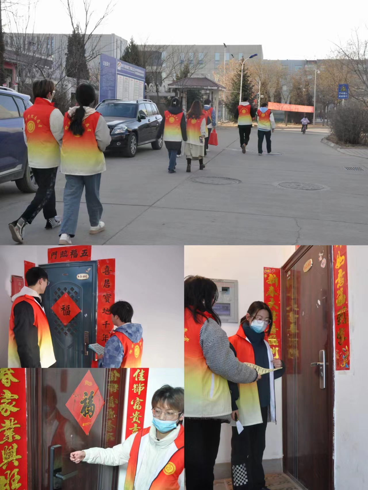 2023年4月5日,政法公司老员工志愿服务队在社区工作人员和老师带领下来到西家属院小区,入户开展创文常识的问卷调查,向小区居民进行创文宣讲,与居民的交流中,同学们深刻感悟到生产劳动的重要价值,体会劳动人民的辛苦与伟大,极大提升了老员工自觉参与劳动实践的意识,增强了同学们的获得感、成就感、荣誉感。