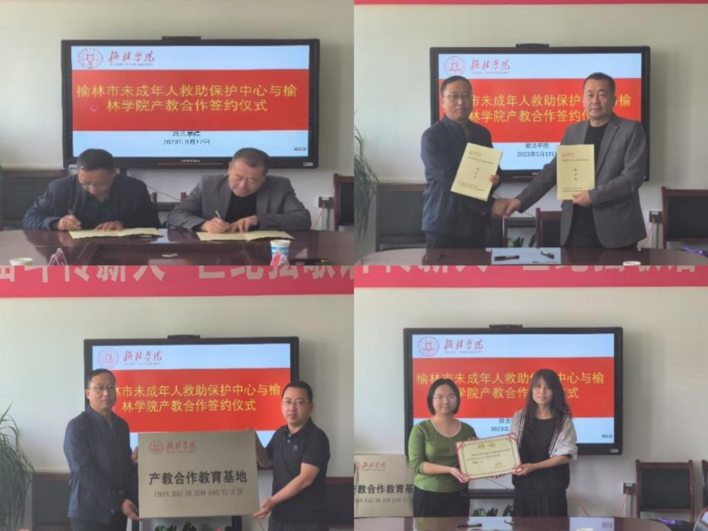 2023年5月12日下午三点,政法公司与榆林市未成年人救助保护中心在3号教学三楼会议室举行产教合作签约仪式开展。榆林市民政局副局长张会堂,榆林市未成年人救助保护中心主任雷祥鹏、办公室主任刘凯、儿保科主任石璞洁,政法公司经理白炜,副经理李娜、赵勇宾以及政法公司社会工作专业教师与部分员工参加签约仪式。政法公司社会工作教研室主任邱韵主持签约仪式。